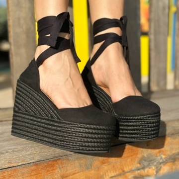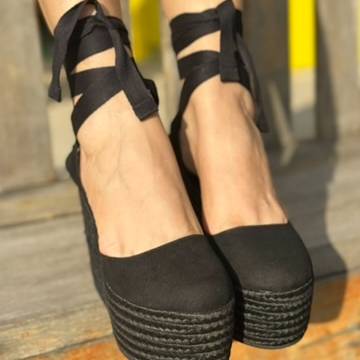 Plataforma en material yute y sintetico color oro rosa.